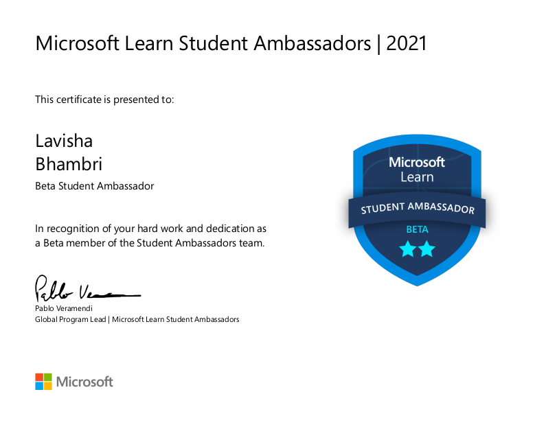 - Created an impact on the community by conducting a workshop on Microsoft technologies like git, GitHub, VS Code, etc.